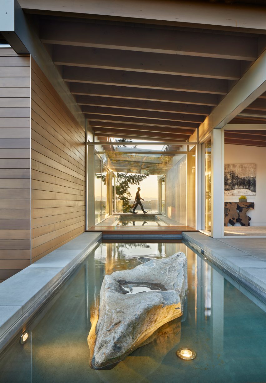 - Large-scale glazing that frames outdoor landscapes